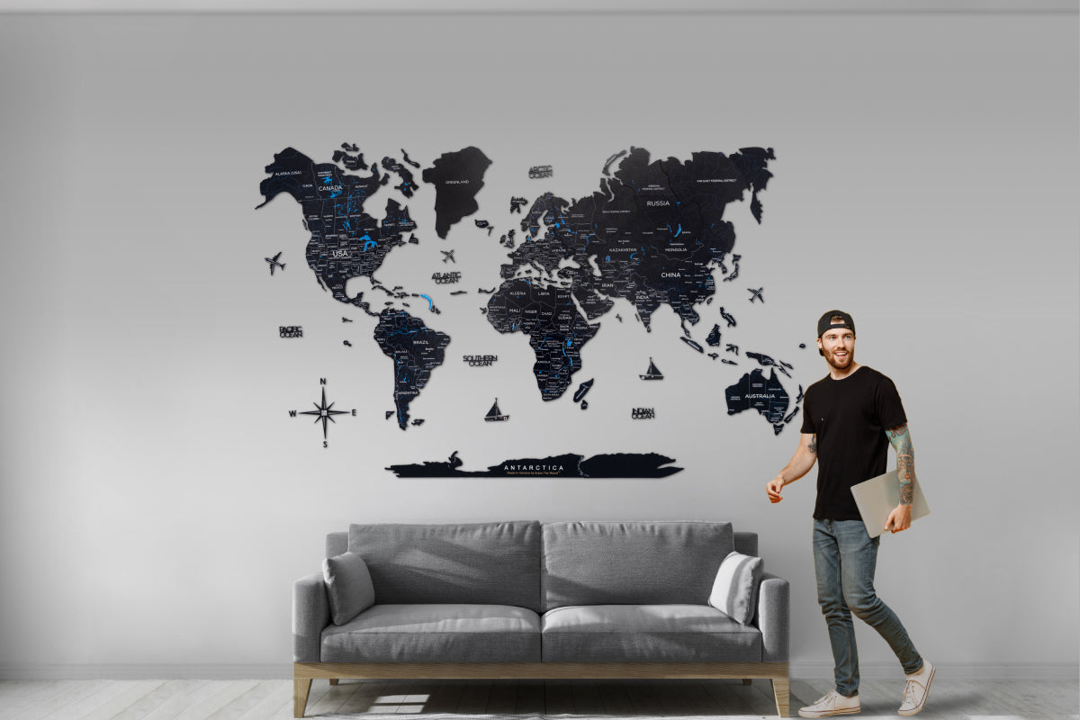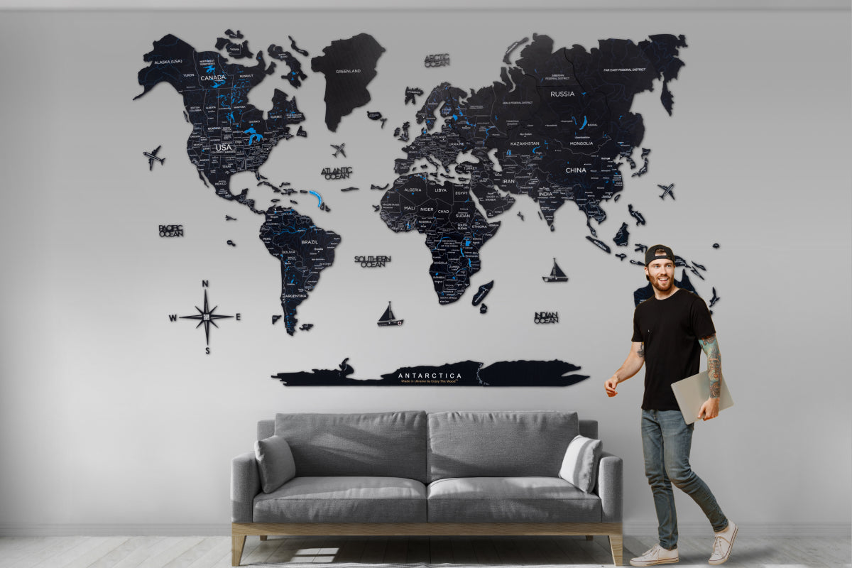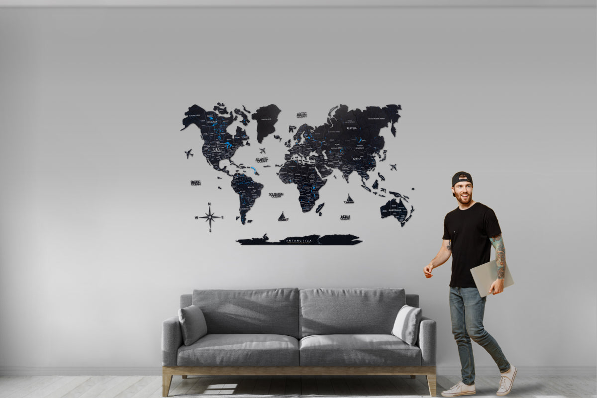 Crafted from sustainable materials, the multi-layered 3D wooden world map offers an unconventional way to personalize your space. It seamlessly integrates into various interior styles – be it traditional, modern, contemporary, or others.
