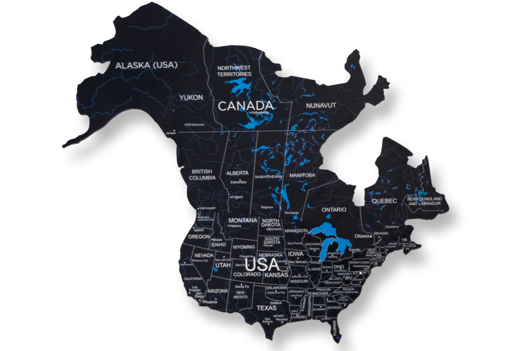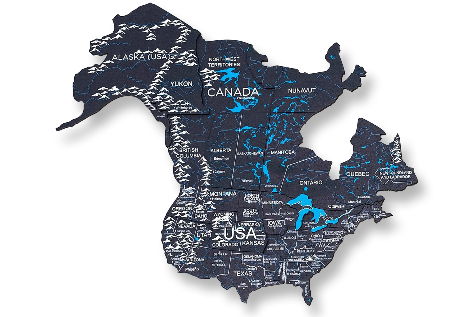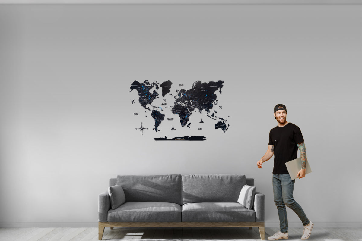 Install a "Midnight" 3D wooden world map to delight your family and inspire them to discover the world. Even if some smaller countries and islands have been omitted, the map sparks the curiosity of every viewer.