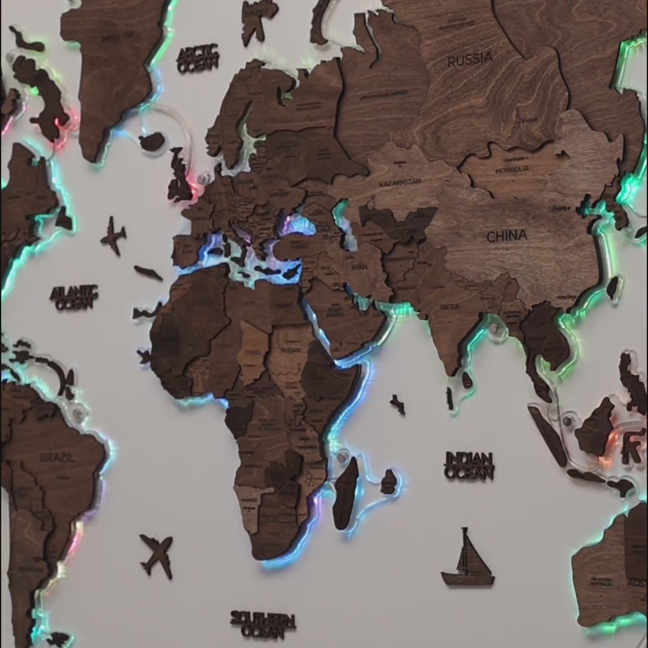 3D LED Wooden World Map 2.0 – Dark Walnut
