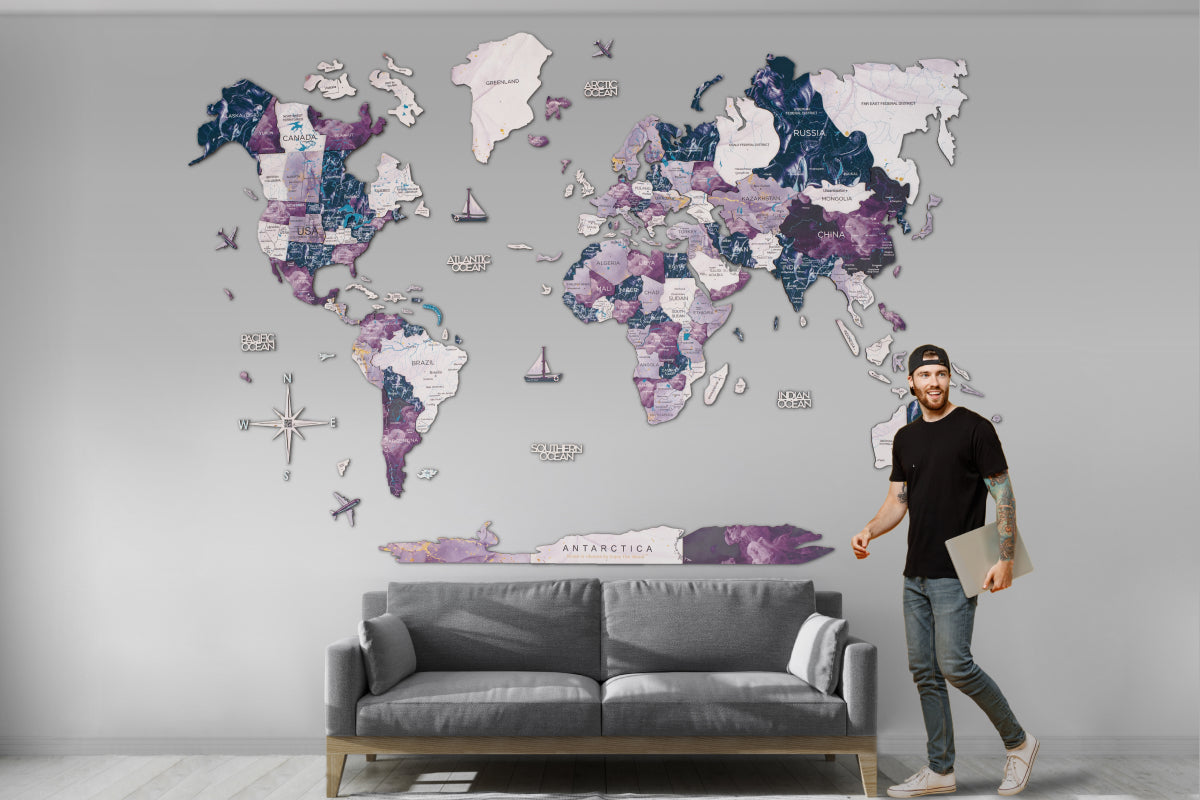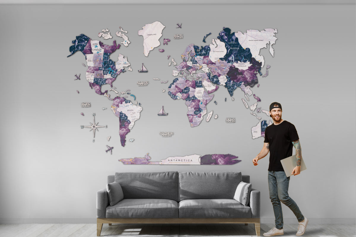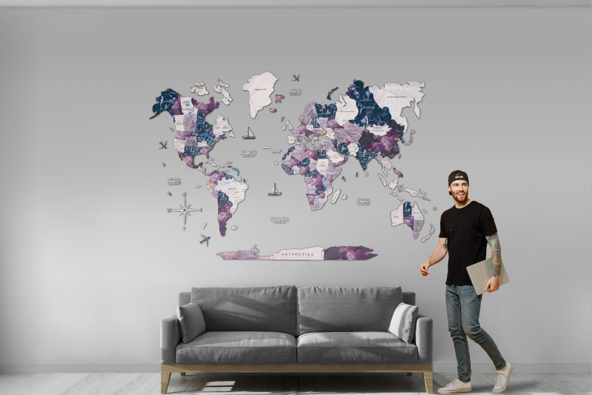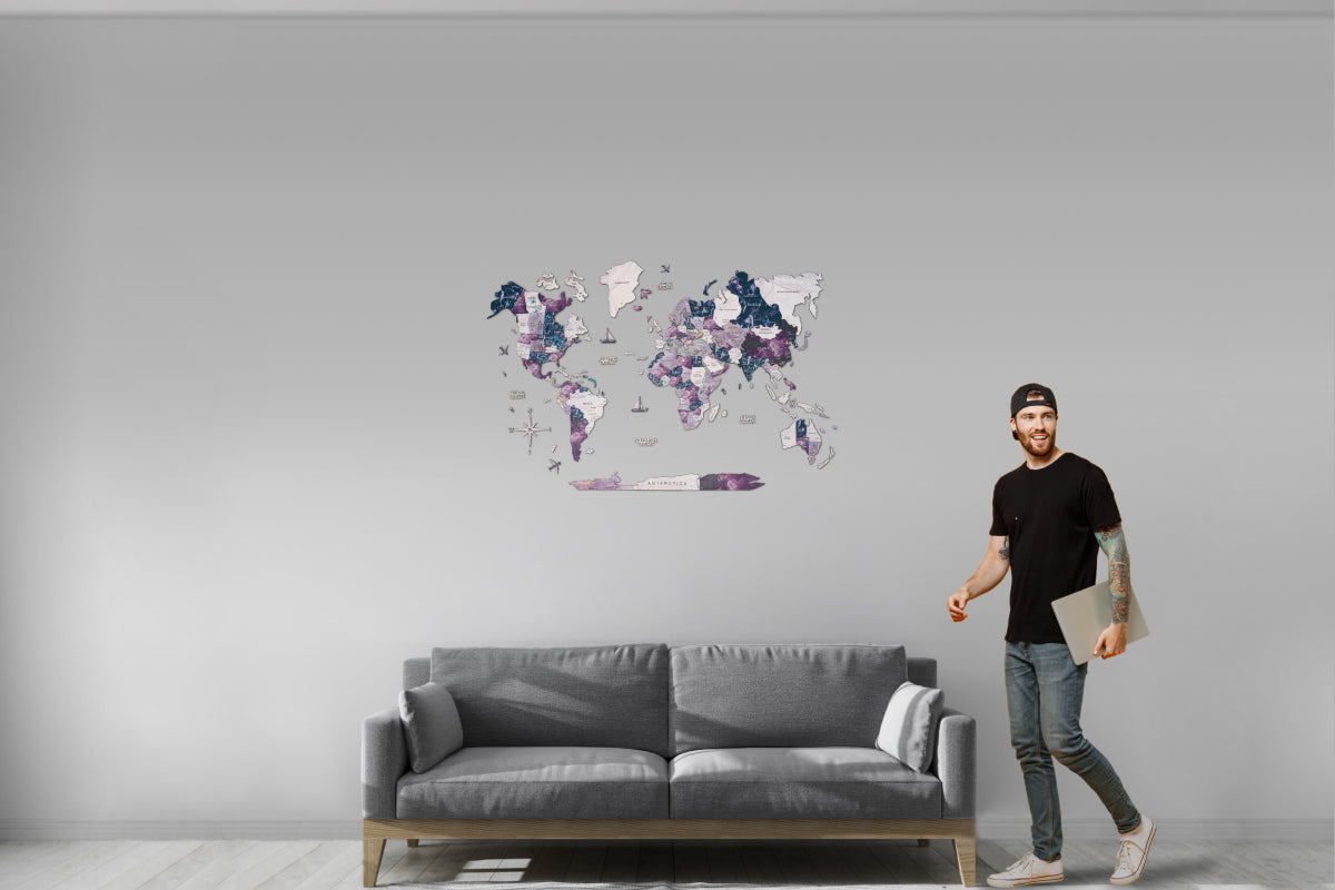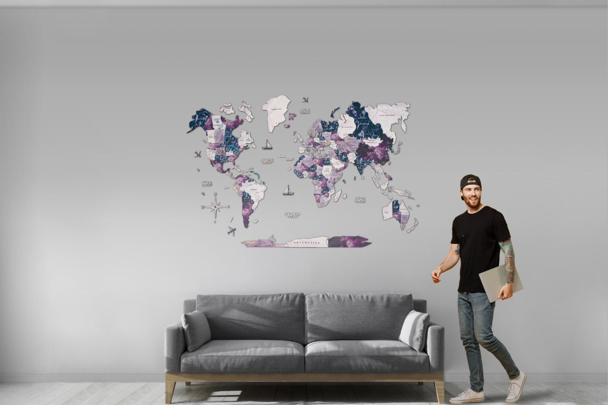 For travel enthusiasts, globetrotters, and dreamers, Enjoy The Wood's "Milky Way" purple world map is more than just home décor – it symbolizes your passion for discovery. Let it adorn your walls and transport you to distant lands with every glance.