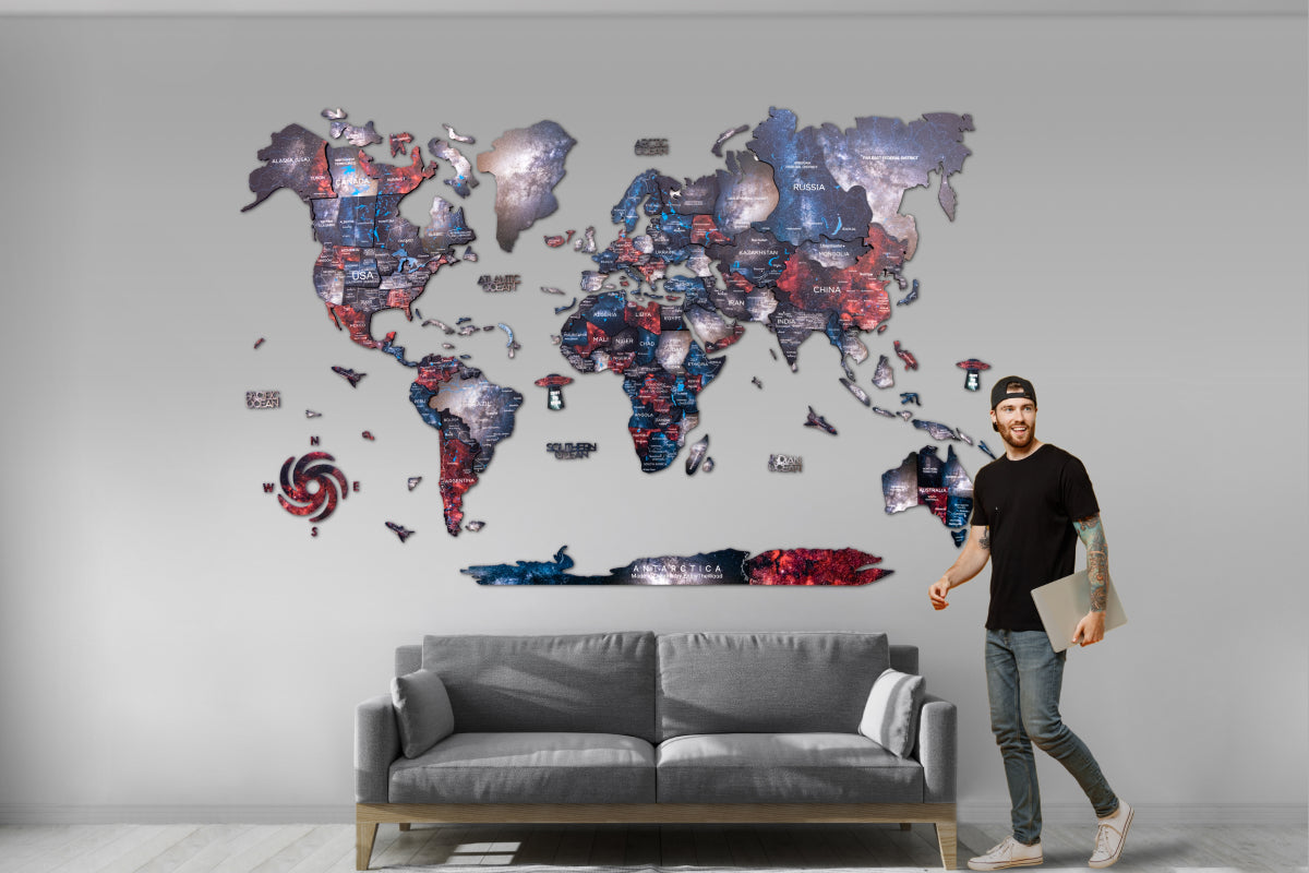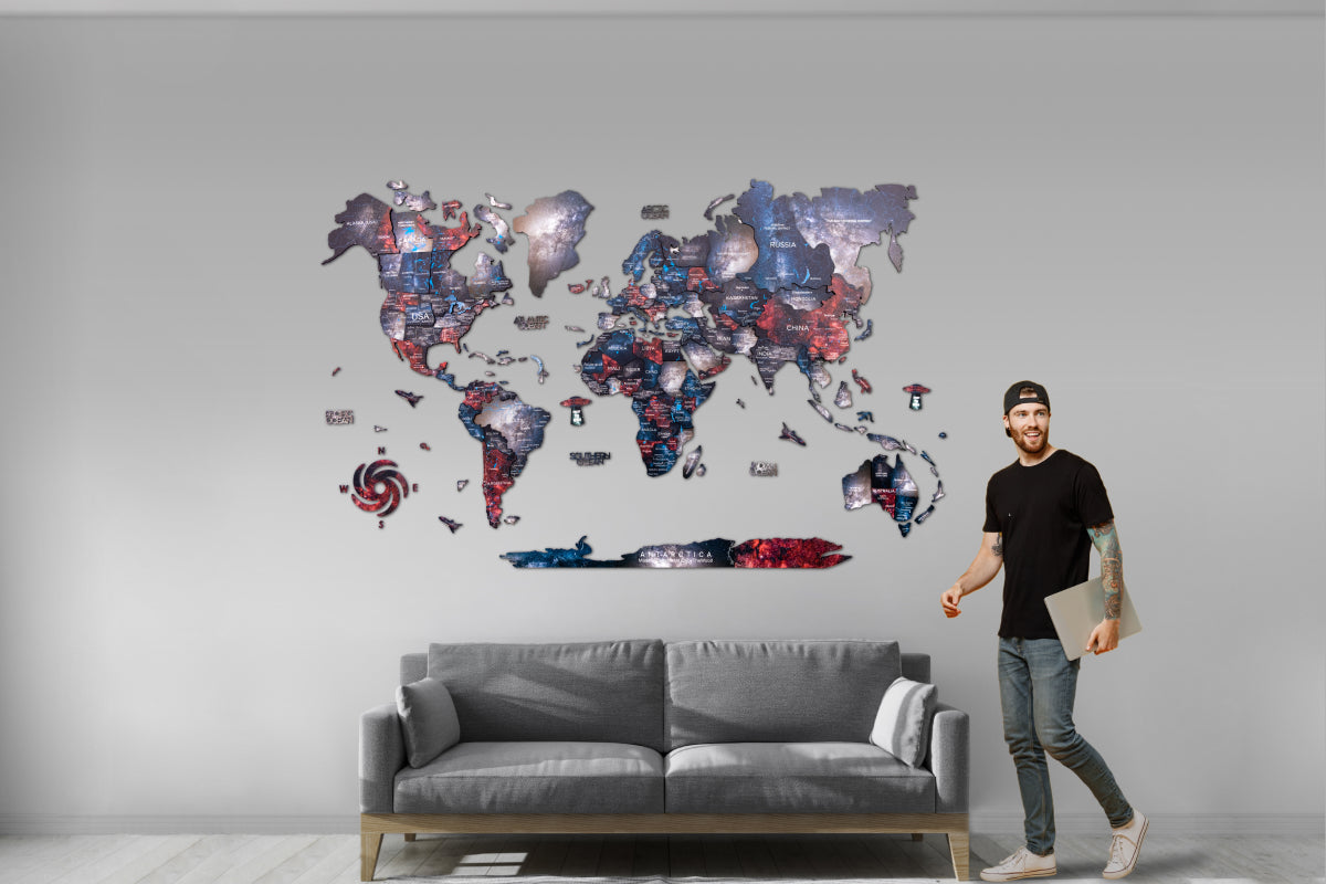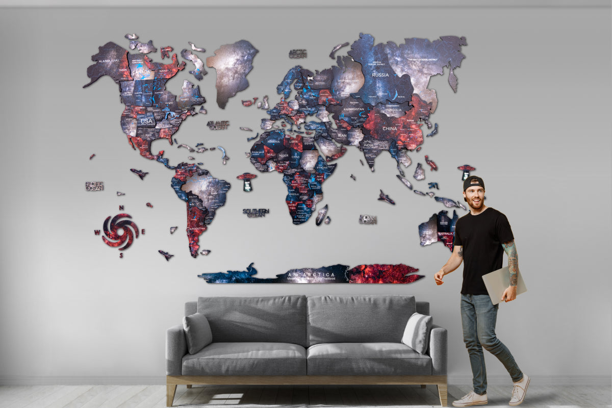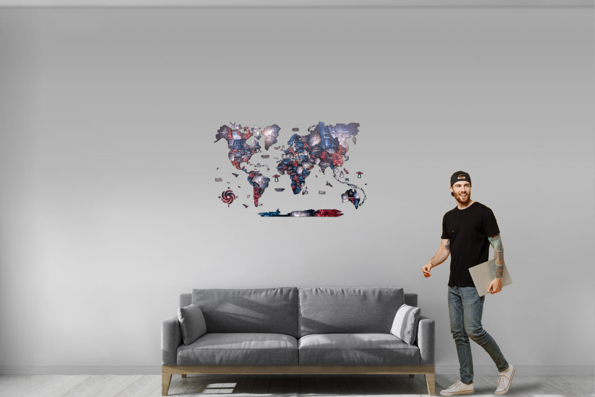 Bist du auf der Suche nach einer farbenfrohen Weltkarte aus Holz, um dein Wohnzimmer, dein Arbeitszimmer, Schlafzimmer oder Büro zu dekorieren?