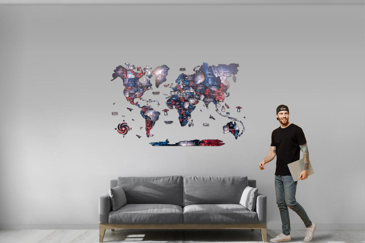 Verwandle dein Zuhause mit einer 3D-Weltkarte aus Holz in ein stilvolles und einladendes Zuhause! Die bunte Weltkarte aus Holz ist in mehreren Farbkombinationen erhältlich und fügt sich perfekt in jeden Raum ein.