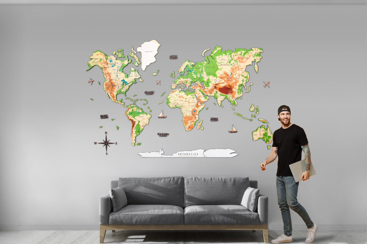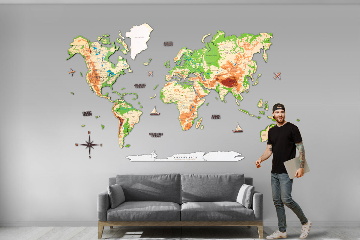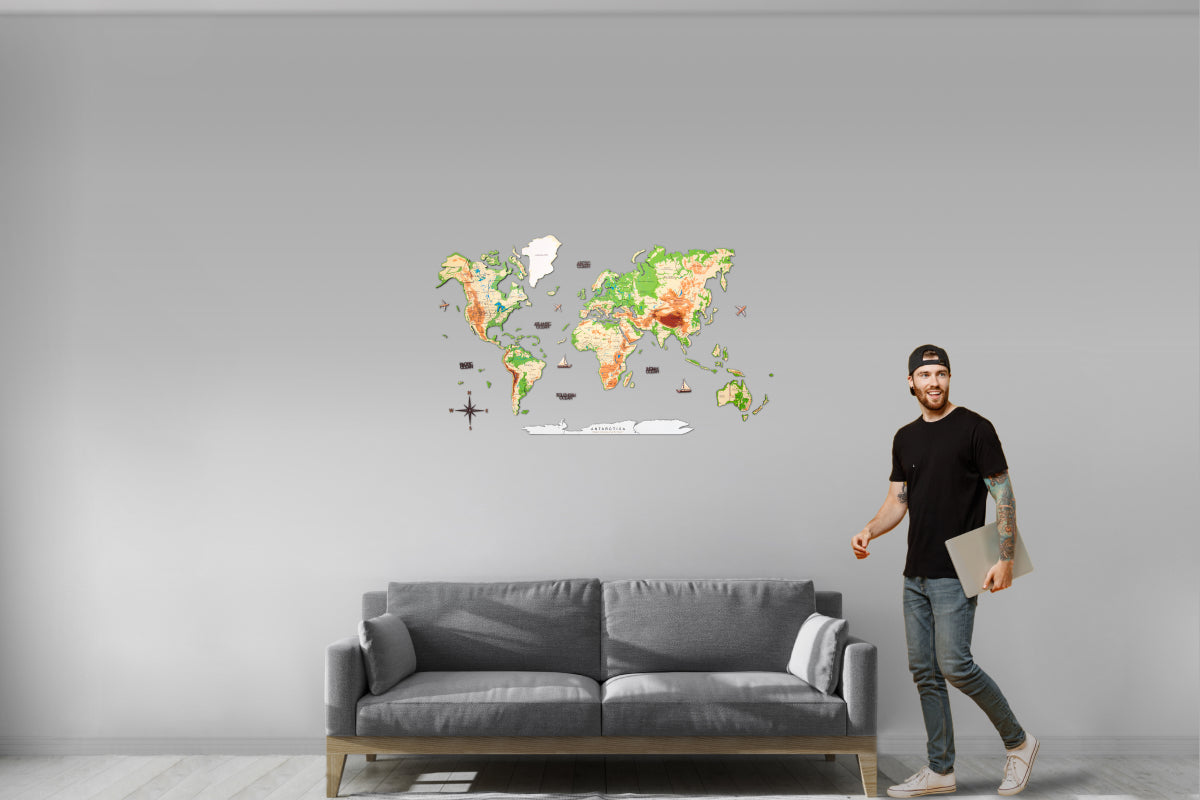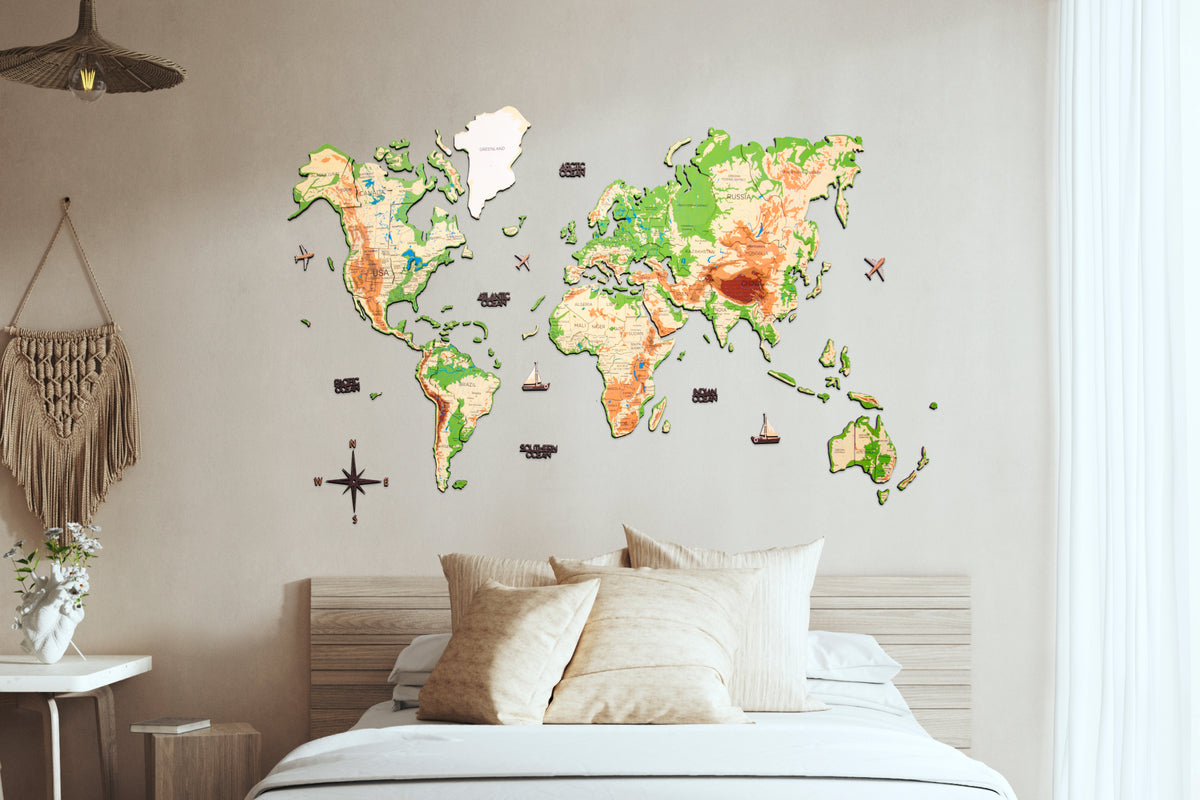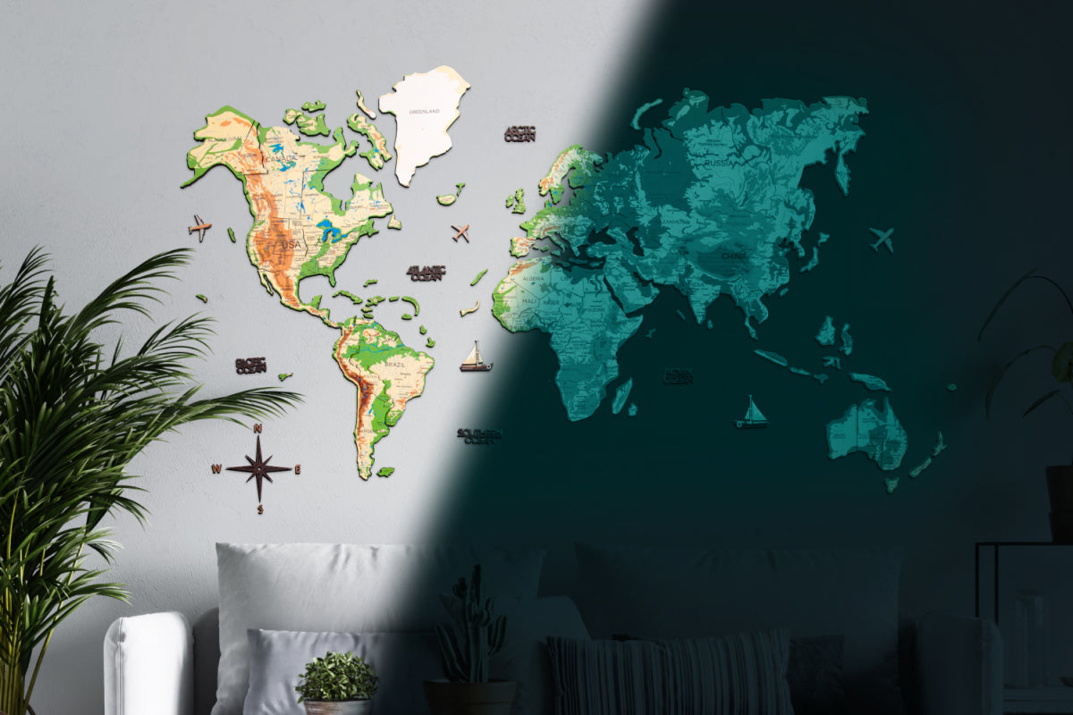3D Leuchtende Farbige Weltkarte aus Holz Physical