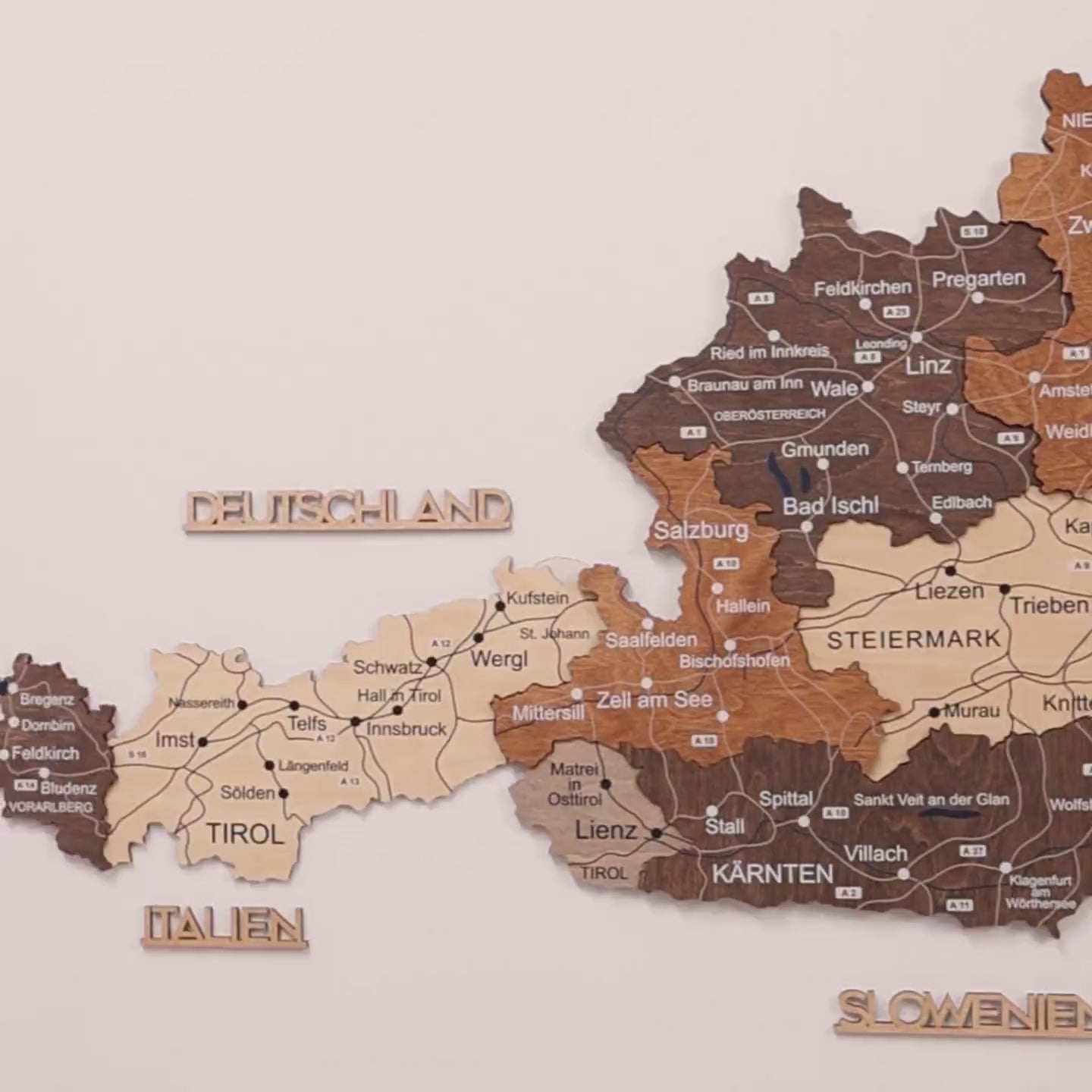 Stöbern Sie auch in unseren Bestsellers und finden Sie weitere Inspirationen für handgefertigte Wandkunst. Egal ob Büro oder Wohnzimmer – diese Österreich Karte Städte und Orte wird garantiert zum Mittelpunkt Ihres Raumes.