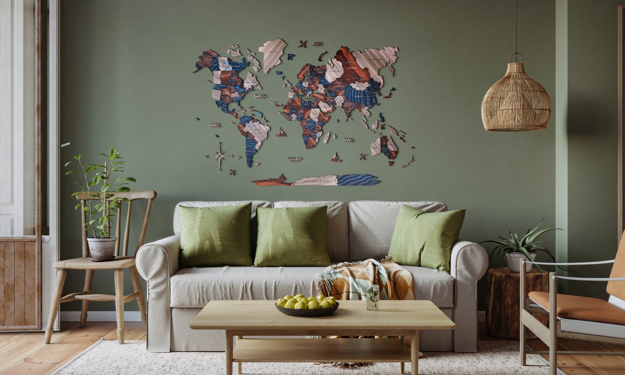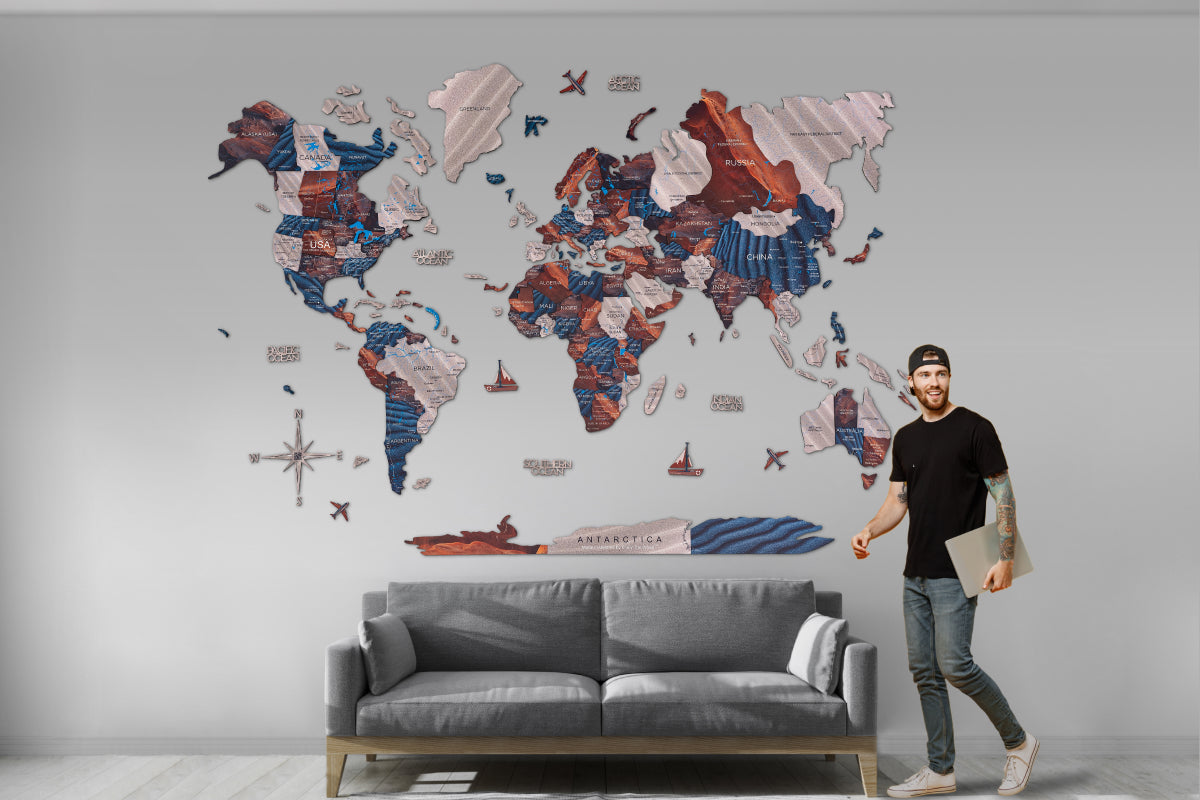 Verwandle deinen Raum mit der beruhigenden 3D-Holzweltkarte „Dune“ in eine Oase der Ruhe. Die warme, sandfarbene Palette erinnert an sanfte Dünen und sonnenverwöhnte Landschaften – perfekt, um in deinem Wohnzimmer oder Arbeitszimmer eine gemütliche Atmosphäre zu schaffen. Lass deine Wände von deiner Reiselust erzählen und begib dich von zu Hause aus auf eine Entdeckungstour rund um den Globus – mit diesem einzigartigen Kartendesign.