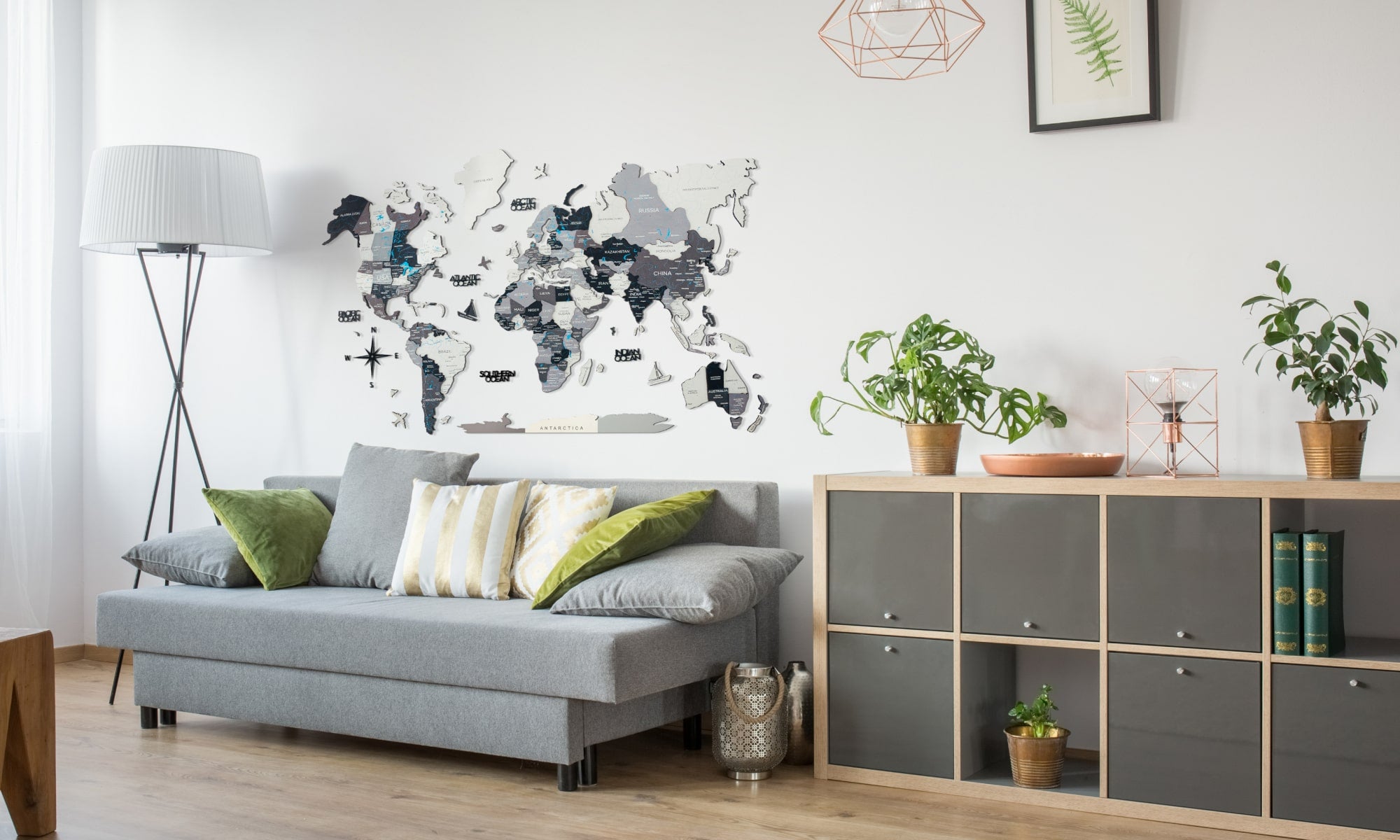 Suchst du nach einer frischen Alternative zu einem gerahmten Foto oder Gemälde? Eine farbenfrohe Weltkarte Kunst ist eine großartige Wahl!